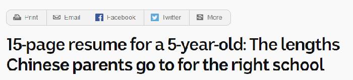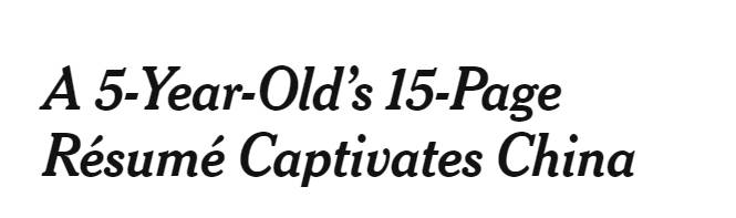 New York Times: 's 15-page resume for a 5-year-old has attracted Chinese attention.