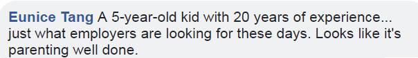 "five-year-olds have a 20-year-old adult experience, isn't that what employers are looking for today? It seems that his family education is very good. "