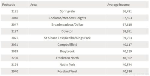 Melbourne's lowest average income zone: Springvale