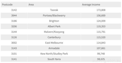 Apart from Portsea, the other rich areas are mainly scattered in the eastern part of Kew to Canterbury to Albert Park and Brighton Bay in Philip Bay. Average income growth in these regions was the lowest at 63%, while the highest was 94%.