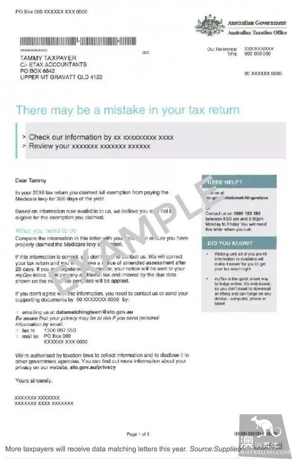 Etax Senior tax Agent Liz Russell said: "when you receive this letter, do not panic first. This means that someone has filed a tax return that ATO believes may not contain all of the information or may contain incorrect information. ATO obtains information from different agencies and then matches the data with the tax return. "