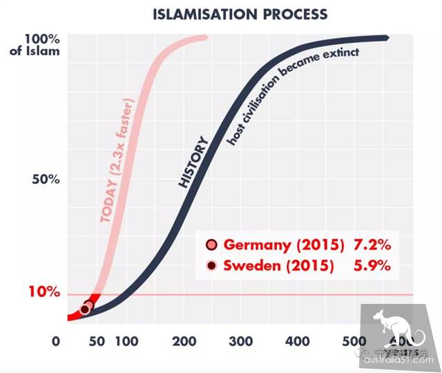- Many Western countries today are very close to the 10% tipping point, or even above the tipping point. And today's rate of 10 per cent of the total population of Muslim is 230 per cent of history. In other words, Germany, Sweden, France, Belgium, the Netherlands and Britain reached 10 percent faster than Egypt's, Tunisia, Iran, Iraq, Spain, Syria, Turkey and Albania.