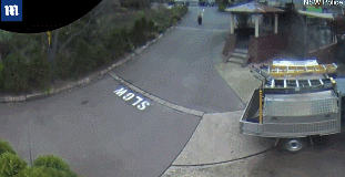 As the vehicle passed, co-pilot passengers fired three consecutive shots out of the window at the Mistys massage store, where bullets could be seen lifting dust from obstacles.