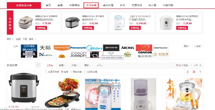 Of course, in addition to electrical appliances, there are also Chinese supermarket rice, Lao Gan Ma, snail, powder and other Chinese cuisine, but also home specialty domestic direct mail!